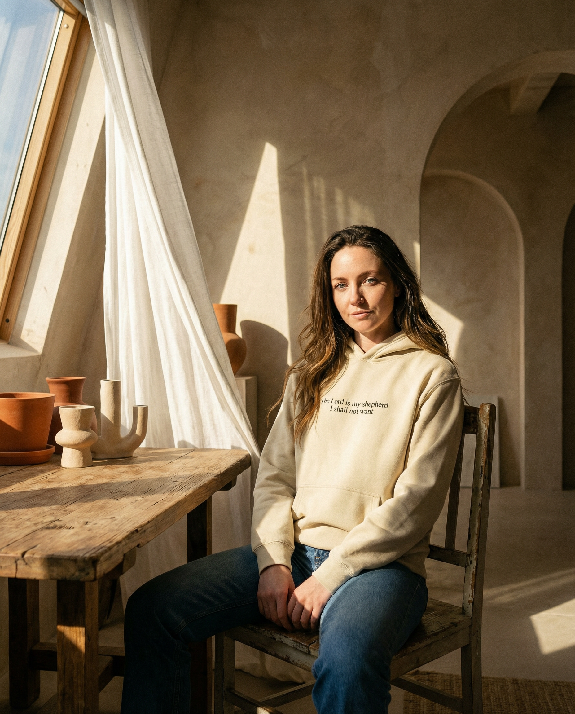 Because this work is rooted in His compassion, 10% of all profits are donated to women’s shelters — a small way to extend the hope and healing He gave me.